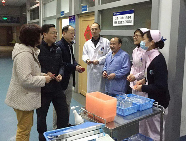 本報訊(院辦:陳婷)2月18日,農(nóng)歷除夕夜。常務副院長魏真、黨委書記錢新春、副院長陳榕珍等在榕的院領導專程看望并慰問了節(jié)假日堅守臨床一線工作崗位的醫(yī)護人員。他們與工作人員親切握手,感謝他們的辛苦付出,并向他們拜年,為他們送上新春的祝福。