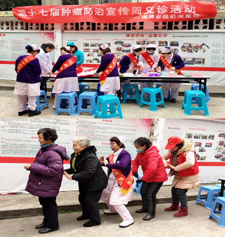 春意漸濃,新春將至,福建省級機關醫(yī)院醫(yī)務人員提前恭祝廣大人民群眾新年快樂!在2018年2月4日,適逢“世界抗癌日”來臨之際,我院腫瘤??平M織醫(yī)務人員來到鼓樓區(qū)中山社區(qū)開展“我們能,我能——戰(zhàn)勝癌癥(We can,I can)”主題義診活動,活動旨在倡導新的方法促進國際各組之間的合作,加強癌癥研究、預 防及治療等領域的進展,并在全球同步開展腫瘤防治的科普宣傳,提高癌癥早診水平。