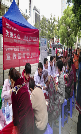 3月17日上午我院消化內(nèi)鏡室醫(yī)護人員聯(lián)合鼓西社區(qū)衛(wèi)生服務(wù)中心,在鼓樓前公園舉行一場“關(guān)愛生命、消化道早癌篩查義診”活動。