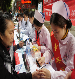 本次公益性義診活動現(xiàn)場氣氛熱烈,人頭攢動,參加義診的醫(yī)護人員應(yīng)接不暇,整整一個上午,義診專家總共為50名群眾做了健康問卷調(diào)查,發(fā)放宣傳資料100余份,并免費測血壓、測血糖等,用我們的專業(yè)醫(yī)學知識為現(xiàn)場居民普及健康防病知識。大家周到熱情的服務(wù)得到鼓西社區(qū)居民的贊揚,提高大家對消化道早癌的認識,有不少社區(qū)居民還進行預(yù)約檢查的登記。