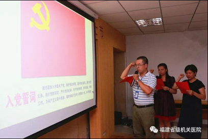 黨委委員章文杰帶領(lǐng)2名新發(fā)展的黨員神圣地舉起右手,緊攥拳頭,向著鮮紅的黨旗莊嚴(yán)宣誓,其他黨員也一起重溫入黨誓詞。隨后進(jìn)行新黨員“戴黨徽、亮身份、樹形象”佩戴黨徽儀式,黨委副書記、副院長(zhǎng)陳榕珍為新發(fā)展黨員佩戴黨徽。共產(chǎn)黨員佩戴黨徽,戴出的是黨員身份,亮出的是責(zé)任意識(shí),彰顯的是擔(dān)當(dāng)精神,體現(xiàn)的是高度自信,可貴的是接受監(jiān)督。時(shí)刻銘記自己的黨員身份,發(fā)揮一名黨員、一面旗幟的作用,不斷提高黨性意識(shí)、責(zé)任意識(shí)、服務(wù)意識(shí)和宗旨意識(shí),自覺接受群眾監(jiān)督。