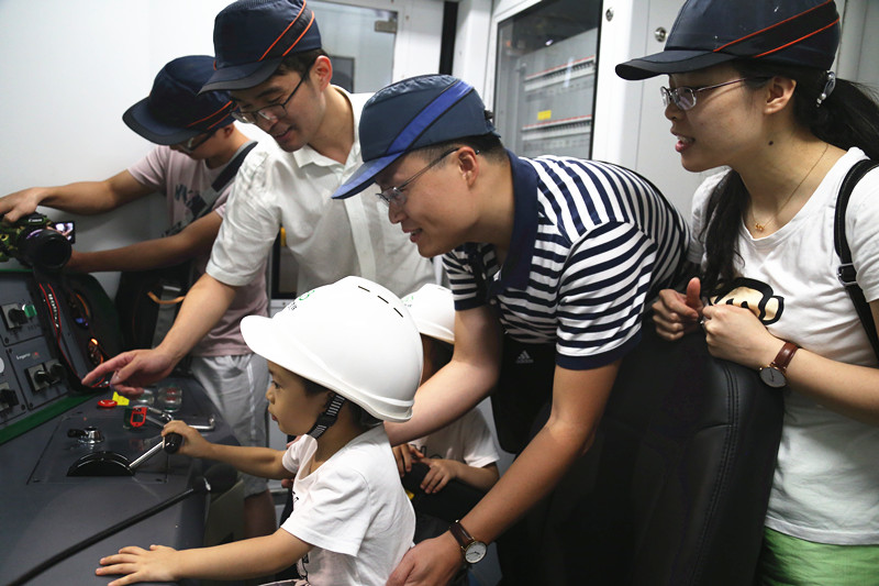 大小“鐵粉”們紛紛獲得進(jìn)入列車駕駛室參觀的寶貴機(jī)會(huì),不僅認(rèn)真聆聽(tīng)現(xiàn)場(chǎng)工作人員的介紹,還小心觸摸了每一個(gè)操作按鍵,細(xì)看顯示屏上每一個(gè)顯示,體驗(yàn)了一把承包整輛地鐵的感覺(jué)。