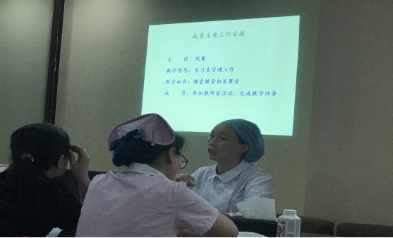 此次活動以加強護理與科研小組??埔?guī)范化內(nèi)容為主題,首先由李華萍老師,吳文英老師為大家介紹了教研室工作及本屆實習生帶教的情況,各位專家老師就教研室工作及實習生帶教中存在問題進行了提問及相關解決建議。