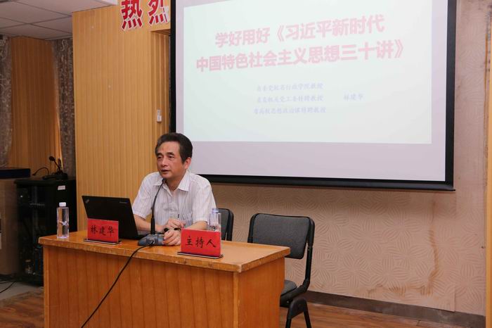培訓講座邀請福建省委黨校、福建省行政學院哲學教研部林建華教授、博士,為廣大黨員干部作了題為“學好用好《習近平新時代中國特色社會主義思想三十講》”的培訓講座。林建華教授結合《習近平新時代中國特色社會主義思想三十講》的綱領提要,深入淺出地為大家介紹和解讀習近平新時代中國特色社會主義思想的形成、重大意義、理論體系構架和品格。