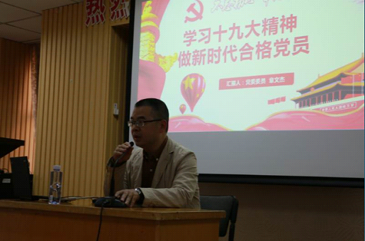 院黨委結(jié)合開展“大學(xué)習(xí)、大調(diào)研、大落實(shí)”活動(dòng),深入開展宣講宣傳習(xí)近平新時(shí)代中國特色社會(huì)主義思想,持續(xù)推進(jìn)“兩學(xué)一做”學(xué)習(xí)教育常態(tài)化制度化。11月29日下午,院黨委委員、醫(yī)教部主任章文杰在建邦大廈301會(huì)議室為全院黨員上了一堂主題為“學(xué)習(xí)十九大精神,做新時(shí)代合格黨員”黨課。章文杰通過自己的見解詳細(xì)講解了十九大的意義和十九大對(duì)黨員提出的新要求。特別結(jié)合新黨章內(nèi)容,提出踐行四講四有,做新時(shí)代合格黨員。