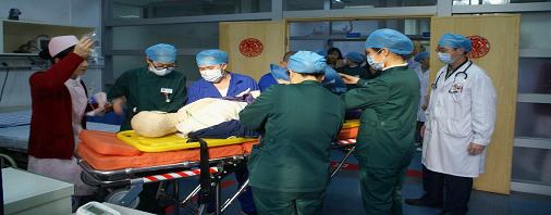 圖2:急診科醫(yī)護(hù)人員到現(xiàn)場初步救治后,準(zhǔn)備轉(zhuǎn)運(yùn)到急診科進(jìn)一步搶救。