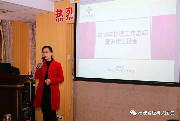 隨后,護(hù)理部副主任楊佳玲進(jìn)行2018年護(hù)理部年終工作報(bào)告,從醫(yī)院評價(jià)角度展開,分別從護(hù)理人力資源、護(hù)理核心制度、臨床護(hù)理質(zhì)量、安全管理與改進(jìn)、護(hù)理質(zhì)量控制體系4個(gè)方面全面梳理了我院2018年護(hù)理工作取得的成績及有待于進(jìn)一步改進(jìn)的問題,并提出了2019年護(hù)理工作的方向。
