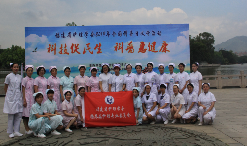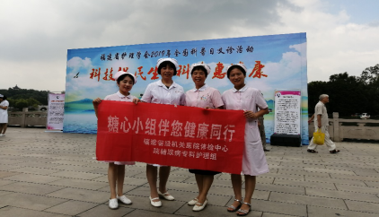 為進(jìn)一步貫徹落實(shí)《“健康中國(guó)2030”規(guī)劃綱要》,推進(jìn)實(shí)施《全民健康素養(yǎng)促進(jìn)行動(dòng)規(guī)劃(2014-2020 年)》,響應(yīng)2019“禮贊共和國(guó)智慧新生活——科技促民生科普惠健康”全國(guó)科普日主題活動(dòng)號(hào)召,福建省護(hù)理學(xué)會(huì)糖尿病專(zhuān)委會(huì)在2019 年9 月15日在鼓西社區(qū)福州西湖晨曦廣場(chǎng)舉行“科普控糖、共筑健康”主題科普活動(dòng),獻(xiàn)禮建國(guó)70 周年,我院鄭小薇督導(dǎo)及糖尿病護(hù)理專(zhuān)科組范穎、徐玉釵、葉銀羽參加此次活動(dòng)。