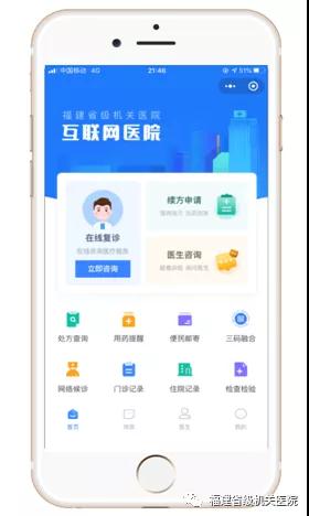 2.微信小程序:關(guān)注“福建省級機(jī)關(guān)醫(yī)院互聯(lián)網(wǎng)醫(yī)院”小程序,注冊領(lǐng)卡后即可與醫(yī)生進(jìn)行一對一問診。