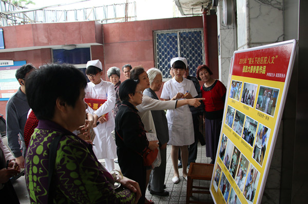 攝影活動收到了66幅參賽作品,經(jīng)專業(yè)評委小組初篩,評出32幅優(yōu)秀作品,并制作成展板在住院部及門診大廳展示,隨機(jī)邀請部分住院病人和門診病人進(jìn)行第二輪的無記名投票,遴選出18幅作品,經(jīng)第三輪評委無記名投票,“鏡頭下的醫(yī)院人文”攝影賽揭曉:內(nèi)科二病區(qū)選送的《凝神貫注》榮獲特等獎;外科一病區(qū)選送的《祖孫情》、內(nèi)科二病區(qū)選送的《排憂天使》獲得一等獎;病房七區(qū)選送的《和諧醫(yī)患、溫馨情暖》《潔凈的手》《天使在學(xué)習(xí)》《留下微笑》等作品獲得三等獎。