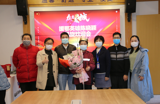 “歡迎曉穎回家!”今天上午,黨委書(shū)記黃守勤、院長(zhǎng)閆建明攜院黨政領(lǐng)導(dǎo)班子成員及相關(guān)科室負(fù)責(zé)人迎接抗“疫”英雄返院。