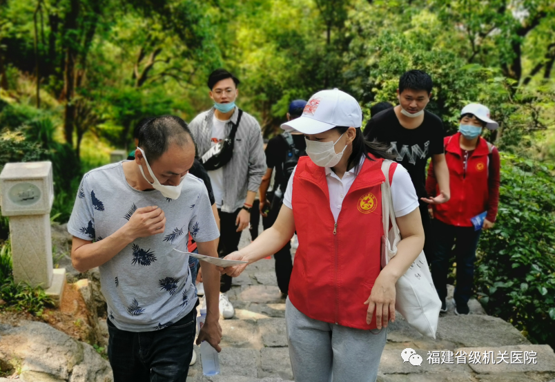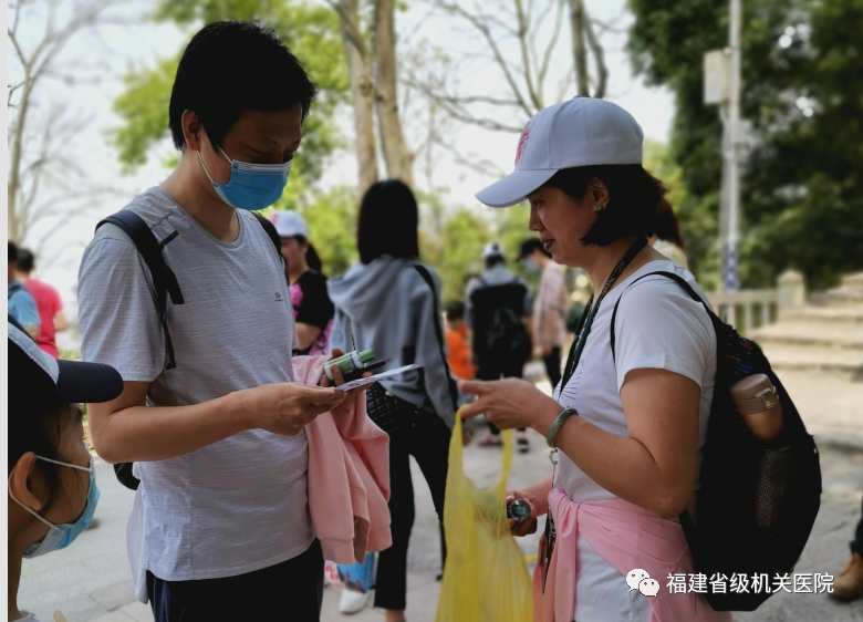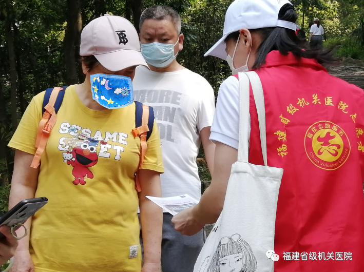 登山過程期間,科學(xué)抗癌的主題理念始終貫徹其中。志愿者服務(wù)隊員通過現(xiàn)場發(fā)放腫瘤知識宣傳單的方式,為群眾帶來腫瘤相關(guān)知識、健康飲食習(xí)慣和生活理念小知識等;向來往群眾普及腫瘤防治常識,用通俗易懂的語言耐心解答他們的疑問,現(xiàn)場向登山游客們宣傳科學(xué)的癌癥防治知識,倡導(dǎo)健康的生活方式,消除對癌癥的誤解和恐懼,幫助正確認(rèn)識腫瘤,科學(xué)規(guī)范防治腫瘤,從而遠(yuǎn)離腫瘤。并告知疫情期間可通過福建省級機(jī)關(guān)醫(yī)院互聯(lián)網(wǎng)醫(yī)院問診咨詢腫瘤防治相關(guān)知識。