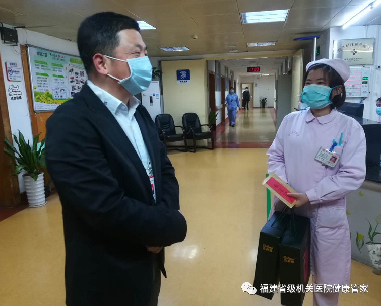 4月24日,院紀(jì)委書記黃欣代表院黨政領(lǐng)導(dǎo)班子成員帶領(lǐng)人事科副科長(zhǎng)楊丹一行來到內(nèi)科二區(qū),親切看望并慰問回到工作崗位的援鄂隊(duì)員陳曉穎同志,感謝她在武漢的辛苦付出,感謝家屬的理解和支持,并送去醫(yī)院的溫暖與關(guān)懷。
