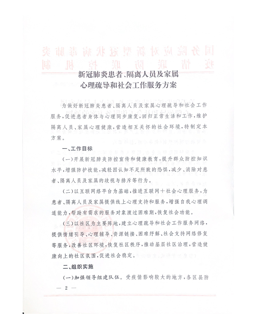 新冠肺炎患者、隔離人員及家屬心理疏導和社會工作服務(wù)方案