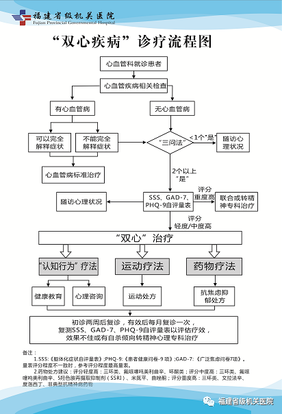 福建省級(jí)機(jī)關(guān)醫(yī)院的“雙心門(mén)診”由具有心血管病醫(yī)師、心理咨詢師、心理治療師、精神科醫(yī)生共同組成的專家團(tuán)隊(duì)。同時(shí)針對(duì)心臟病和心理疾病進(jìn)行專業(yè)的診斷和治療。