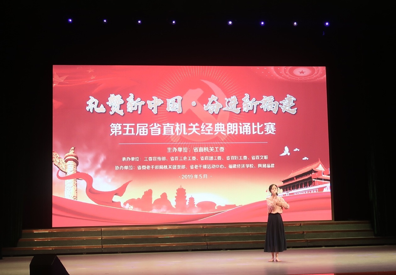 75個(gè)廳局173支隊(duì)伍500多人次,經(jīng)過(guò)3天6場(chǎng)的激烈角逐,5月18日,“禮贊新中國(guó)·奮進(jìn)新福建”第五屆省直機(jī)關(guān)經(jīng)典朗誦比賽圓滿落幕。我院青年職工代表胡艷星榮獲青年組三等獎(jiǎng)。