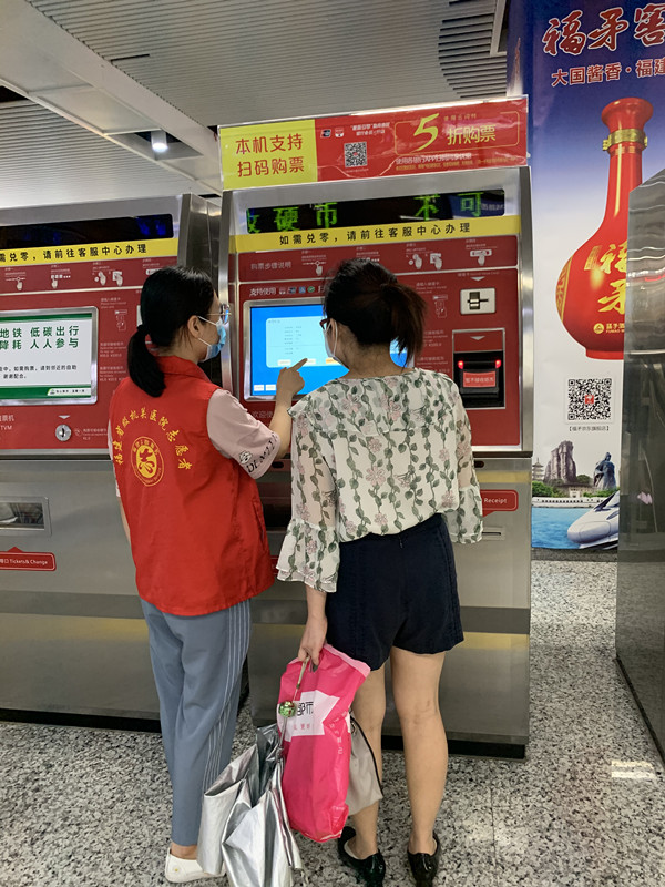 根據(jù)地鐵車站的工作安排,他們在TVW、閘機(jī)、站臺、扶梯等崗位協(xié)助地鐵站點(diǎn)工作人員做好購票引導(dǎo)、秩序維持、文明宣傳、扶弱助殘等工作,并發(fā)放“交通出行安全手冊”,提倡綠色出行,多乘坐公共交通工具,積極引導(dǎo)市民養(yǎng)成文明交通習(xí)慣。