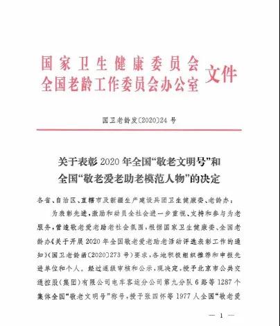 近日,國家衛(wèi)生健康委、全國老齡工作委員會辦公室聯(lián)合印發(fā)《關(guān)于表彰2020年全國“敬老文明號”和全國“敬老愛老助老模范人物”的決定》,我院護理部榮獲2020年全國“敬老文明號”稱號。