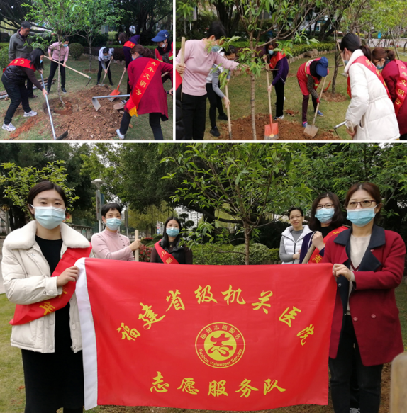 最后,醫(yī)護人員和省奧體中心員工在省奧體中心共同參加義務(wù)植樹,綠化美化環(huán)境,同植健康樹,共圓健康夢,共建幸福城。大家齊心協(xié)力,分工合作,有的揮鍬鏟土,有的扶正苗株,有的提水澆灌,共種植20株樹苗。
