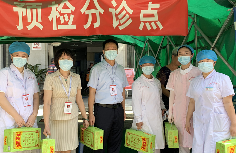 活動中,院黨委副書記、工會主席黃純帶領(lǐng)黨群辦負責人張文清等先后到預(yù)檢分診點、核酸采樣點、發(fā)熱門診走訪慰問高溫環(huán)境下工作的一線醫(yī)護人員,感謝大家為醫(yī)院疫情防控工作付出的努力。