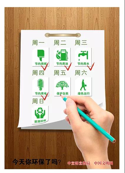 節(jié)能減排從我行。隨手關(guān)電源,電器不待機;出門購物帶布袋,大家吃飯要光盤;一次性用品要拒用,有限資源重復(fù)用;夏季空調(diào)不低26度,環(huán)保低碳不過度。