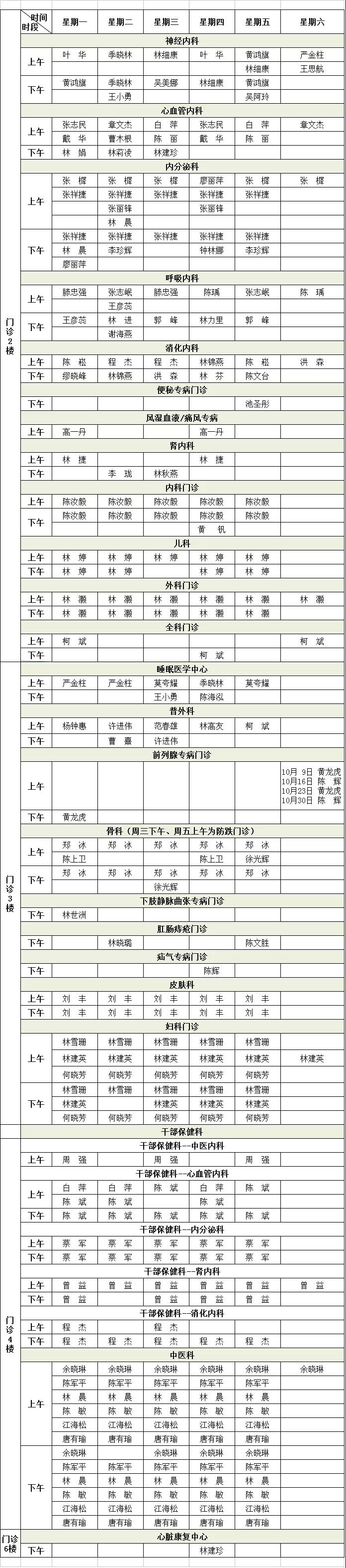 福建省級(jí)機(jī)關(guān)醫(yī)院10月專家門診排班表來(lái)啦,有需要的小伙伴趕緊收藏。