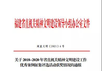 據(jù)悉,省直機關(guān)文明辦組織優(yōu)秀案例征集評選活動,旨在認真總結(jié)省直機關(guān)各單位(學(xué)校)在2018-2020年度文明單位(校園)創(chuàng)建工作中的好經(jīng)驗、好做法,推動新一屆文明單位(校園)創(chuàng)建工作深入開展,不斷提高省直機關(guān)精神文明建設(shè)水平。經(jīng)專家評審,此次征集評選活動共評出一等獎10個、二等獎20個、三等獎30個、優(yōu)秀獎50個。