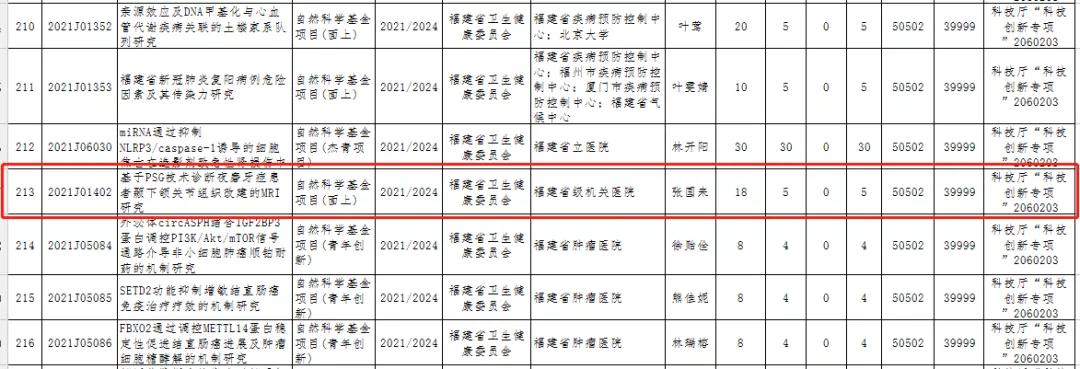 近日,福建省財(cái)政廳、福建省科學(xué)技術(shù)廳發(fā)布《關(guān)于安排2021年度省自然科學(xué)基金等科技計(jì)劃項(xiàng)目經(jīng)費(fèi)(省屬單位)的通知》,我院醫(yī)學(xué)影像科副主任醫(yī)師張國來主持的《基于PSG技術(shù)診斷夜磨牙癥患者顳下頜關(guān)節(jié)組織改建的MRI研究》(科技廳“科技創(chuàng)新專項(xiàng)”2060203)科研項(xiàng)目獲得2021年福建省自然科學(xué)基金(非聯(lián)合)項(xiàng)目立項(xiàng),標(biāo)志著我院放射醫(yī)學(xué)發(fā)展有了新的突破,有力推動了醫(yī)院學(xué)科建設(shè)發(fā)展。