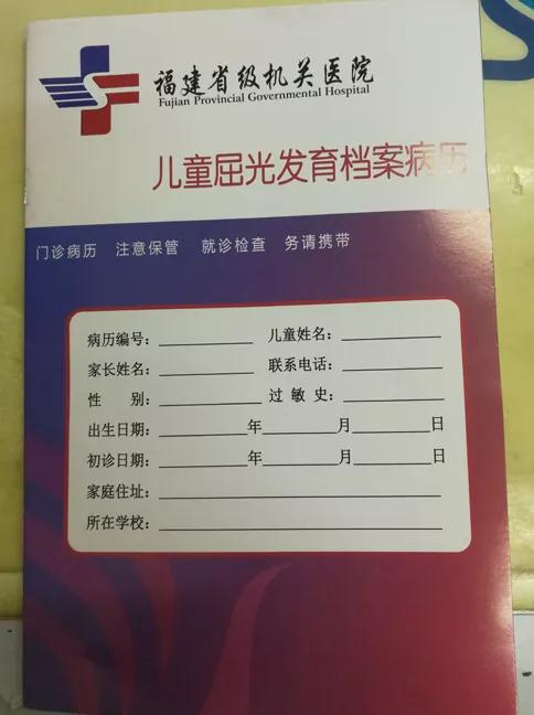 我院眼科總結(jié)了這么多年的工作經(jīng)驗,改進(jìn)了原有的屈光發(fā)育檔案,創(chuàng)立了福建省第一本的兒童屈光發(fā)育檔案病歷。