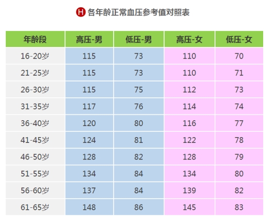 但是人的血壓不是一直穩(wěn)定不變,在一天之內(nèi)會有所變化,在一生之內(nèi)也有所變化,而且男性和女性的血壓也會有所區(qū)別,所以就很需要這張表來做參考。