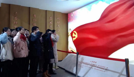作為志愿服務(wù)第一支隊(duì)伍,黨團(tuán)員們懷著敬仰的心情參觀了吳孟超院士館,面對(duì)黨旗,舉起右手,重溫入黨誓詞。