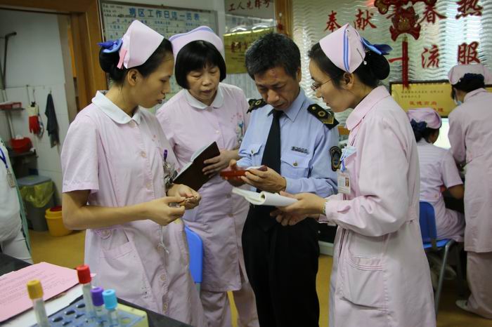 本報(bào)訊(醫(yī)務(wù)科:劉夢(mèng)婷、周麗敏,護(hù)理部:郭建平)2015年10月20日下午,省衛(wèi)生計(jì)生委衛(wèi)生監(jiān)督所孫四清副調(diào)研員、衛(wèi)生監(jiān)督四科科長(zhǎng)鄭錦其等一行5人對(duì)我院依法執(zhí)業(yè)、臨床用血、病歷處方管理、特殊藥品管理、母嬰保健技術(shù)管理、醫(yī)院感染管理、醫(yī)療廢棄物等六方面進(jìn)行檢查。我院常務(wù)副院長(zhǎng)魏真以及醫(yī)務(wù)科、護(hù)理部、院感科、藥劑科等科室相關(guān)人員全程陪同檢查。
