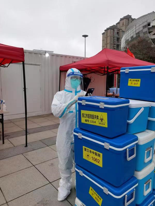 檢驗(yàn)科林道烺、余孟場(chǎng)在泉州核酸檢測(cè)方艙醫(yī)院參與核酸檢測(cè)工作
