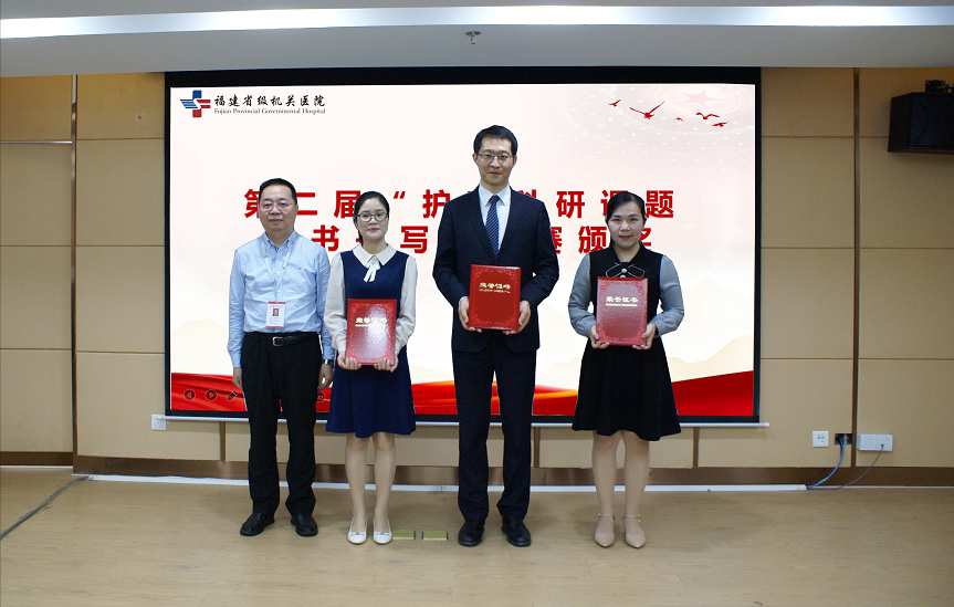 黨委書記黃守勤為“第二屆護(hù)理科研課題標(biāo)書書寫”比賽獲獎?wù)哳C獎