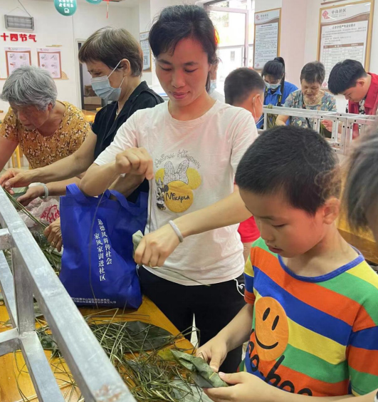 我院志愿者與共建社區(qū)居民代表、親子家庭等共同體驗端午節(jié)包粽子習(xí)俗,讓孩子們感受中國傳統(tǒng)節(jié)日的內(nèi)涵,進(jìn)一步鍛煉動手能力和學(xué)習(xí)能力。在一陣陣粽葉飄香中,進(jìn)一步增進(jìn)大家之間的親密聯(lián)系和相互交流,在集體的溫暖中共度雙節(jié)。