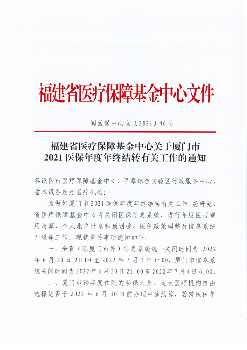 關(guān)于廈門市醫(yī)保2021年度結(jié)轉(zhuǎn)停機通知