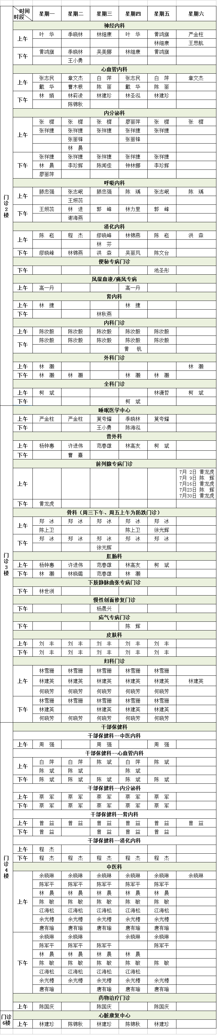 福建省級(jí)機(jī)關(guān)醫(yī)院2022年7月專家門診排班表來(lái)啦!有需要的小伙伴趕緊收藏。
