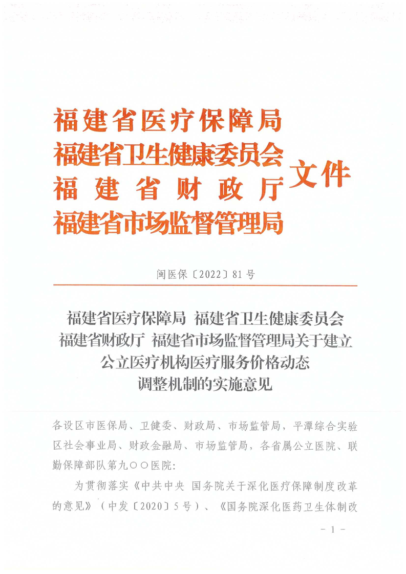 關(guān)于建立醫(yī)療機(jī)構(gòu)醫(yī)療服務(wù)價(jià)格動(dòng)態(tài)調(diào)整機(jī)制的實(shí)施意見 閩醫(yī)?!?022〕81號(hào)