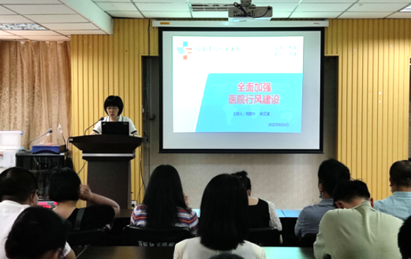 為進一步加強行業(yè)作風(fēng)建設(shè),規(guī)范醫(yī)療執(zhí)業(yè)行為,增強醫(yī)療衛(wèi)生人員的責(zé)任感、使命感、榮譽感,樹牢廉潔行醫(yī)意識,8月4日下午,我院組織開展《全面加強醫(yī)院行風(fēng)建設(shè)》培訓(xùn)。