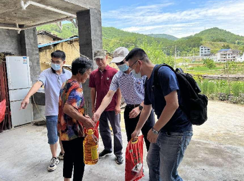 義診結(jié)束后,支部書記念其濱、林捷帶隊在當(dāng)?shù)赝疽龑?dǎo)下看望了村中身患重病不便出行且家庭負(fù)擔(dān)較重的幾戶人家,了解了他們的基本情況,進(jìn)行了健康評估,并送上了糧、油等慰問品。