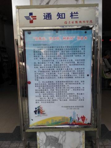 2. 在醫(yī)院門診大門、體檢中心外墻LED屏顯示迎青運會主題口號;在宣傳欄、醫(yī)院網(wǎng)站、醫(yī)院微信公眾號、門診和病區(qū)張貼“迎青運、講文明、樹新風(fēng)的倡議書”,并通過院周會、早會的形式將青運會宣傳月活動思想及相關(guān)要求傳達到位。