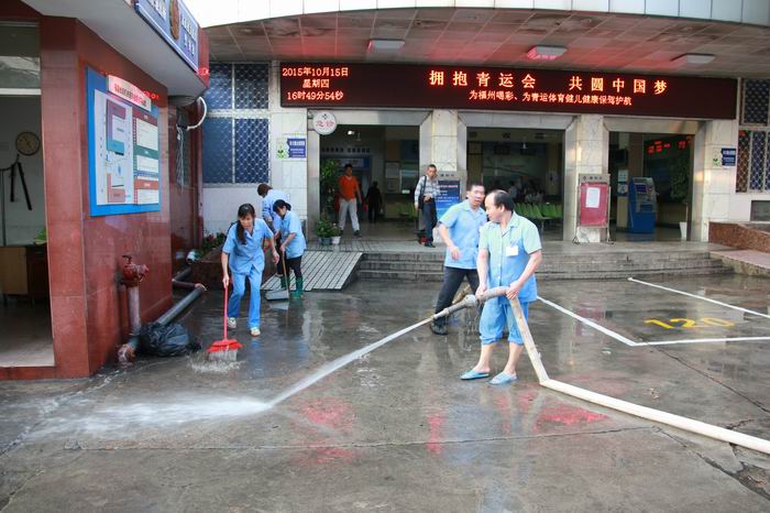 8.開通青運會“綠色通道”,完善服務(wù)窗口的硬件和環(huán)境建設(shè),提供優(yōu)質(zhì)的醫(yī)療服務(wù)。.積極做好環(huán)境衛(wèi)生整治。大力實施院內(nèi)凈化、美化、綠化工程,糾正隨地吐痰、亂扔垃圾、亂貼亂畫等頑癥。在醫(yī)院醒目處設(shè)置禁煙標(biāo)志,全員參與戒煙勸導(dǎo)員,實現(xiàn)醫(yī)院室內(nèi)全面禁煙。更換門診吊板、更新病房窗簾,為就醫(yī)患者提供一個干凈、清新、怡人的環(huán)境。