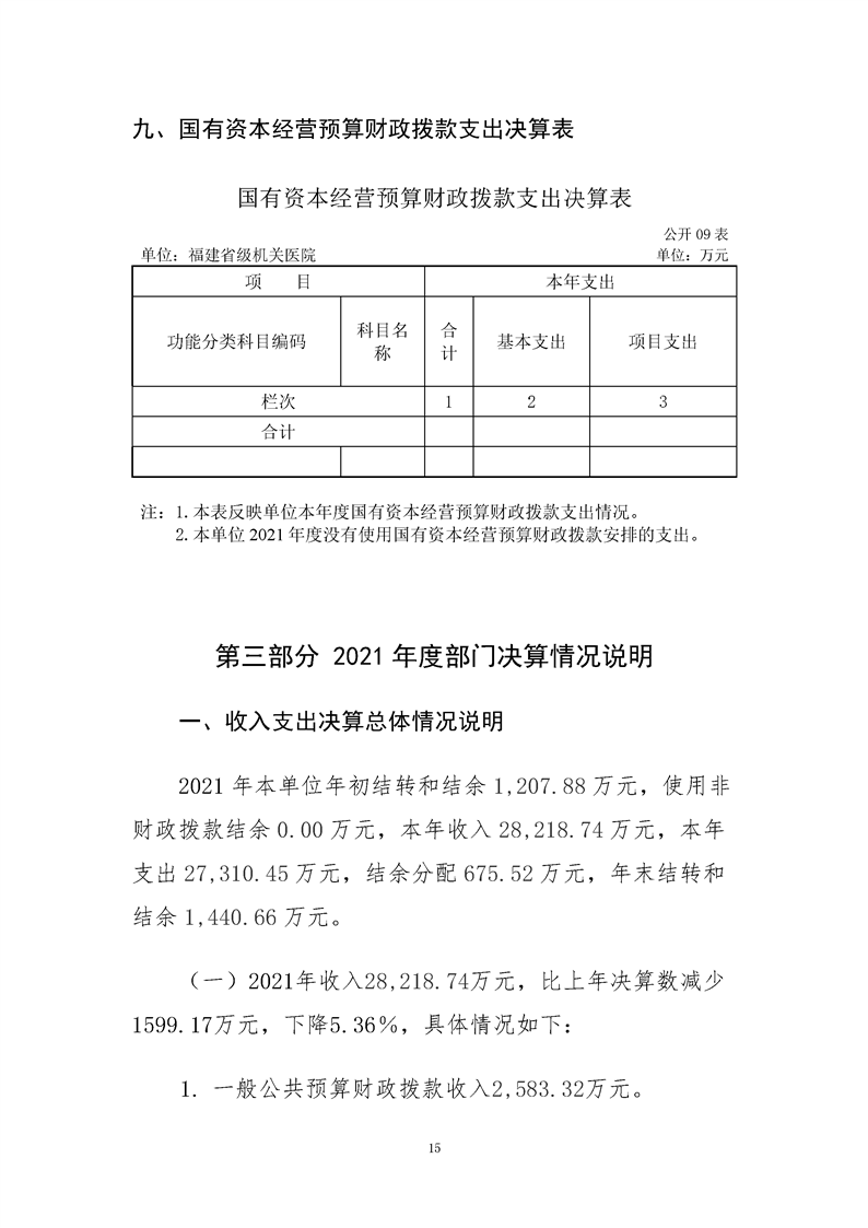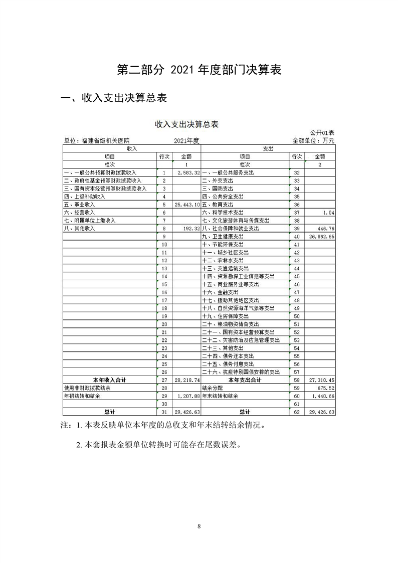 2021年度福建省級機(jī)關(guān)醫(yī)院決算公開報告