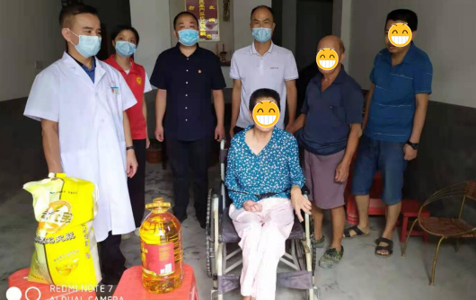 最后黨員們走村入戶慰問三戶行動不便的老人及特困戶,為群眾送去健康,送上溫暖。