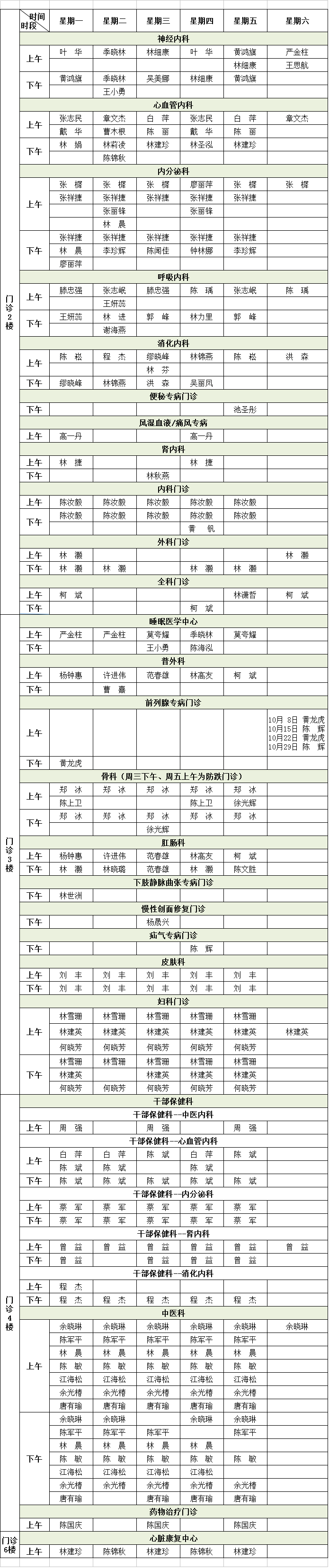 福建省級機關醫(yī)院2022年10月專家門診排班表來啦!有需要的小伙伴趕緊收藏。