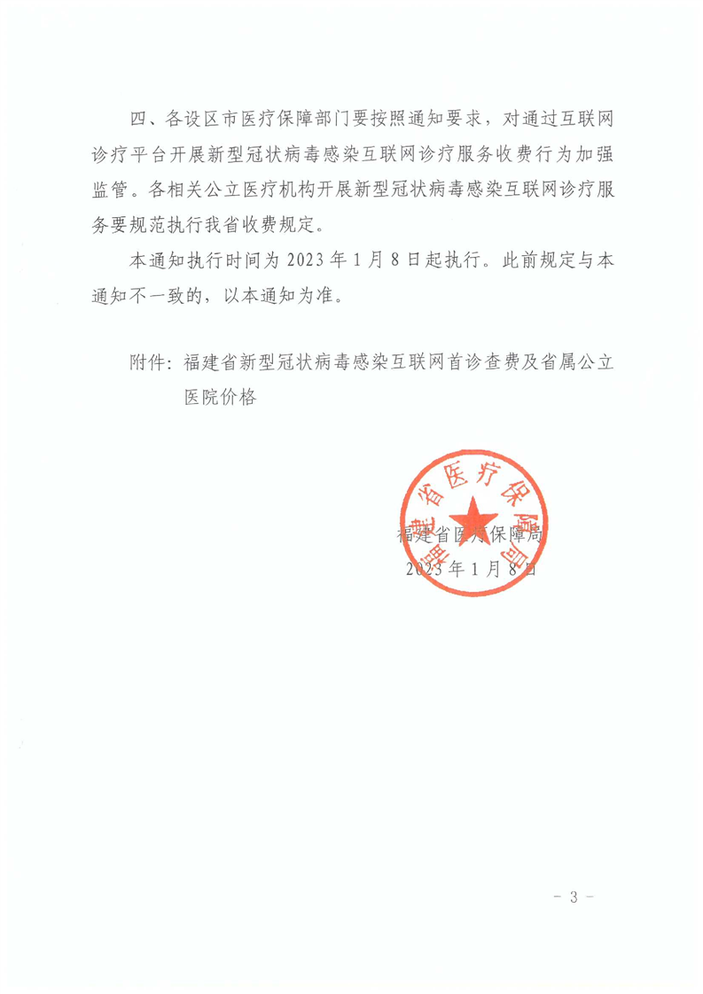 福建省醫(yī)療保障局關(guān)于新型冠狀病毒感染互聯(lián)網(wǎng)醫(yī)療服務(wù)收費有關(guān)問題的通知