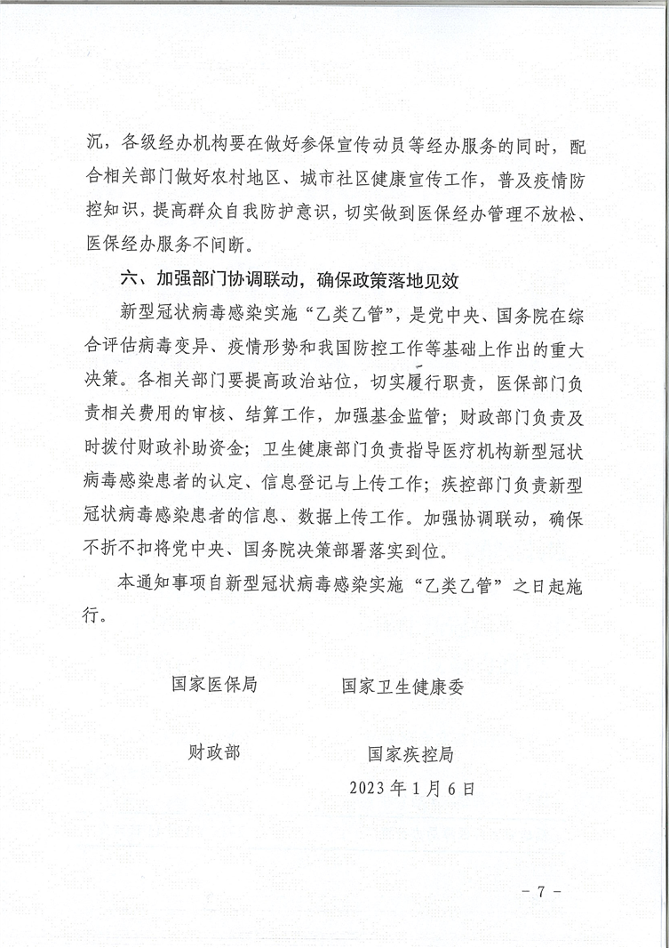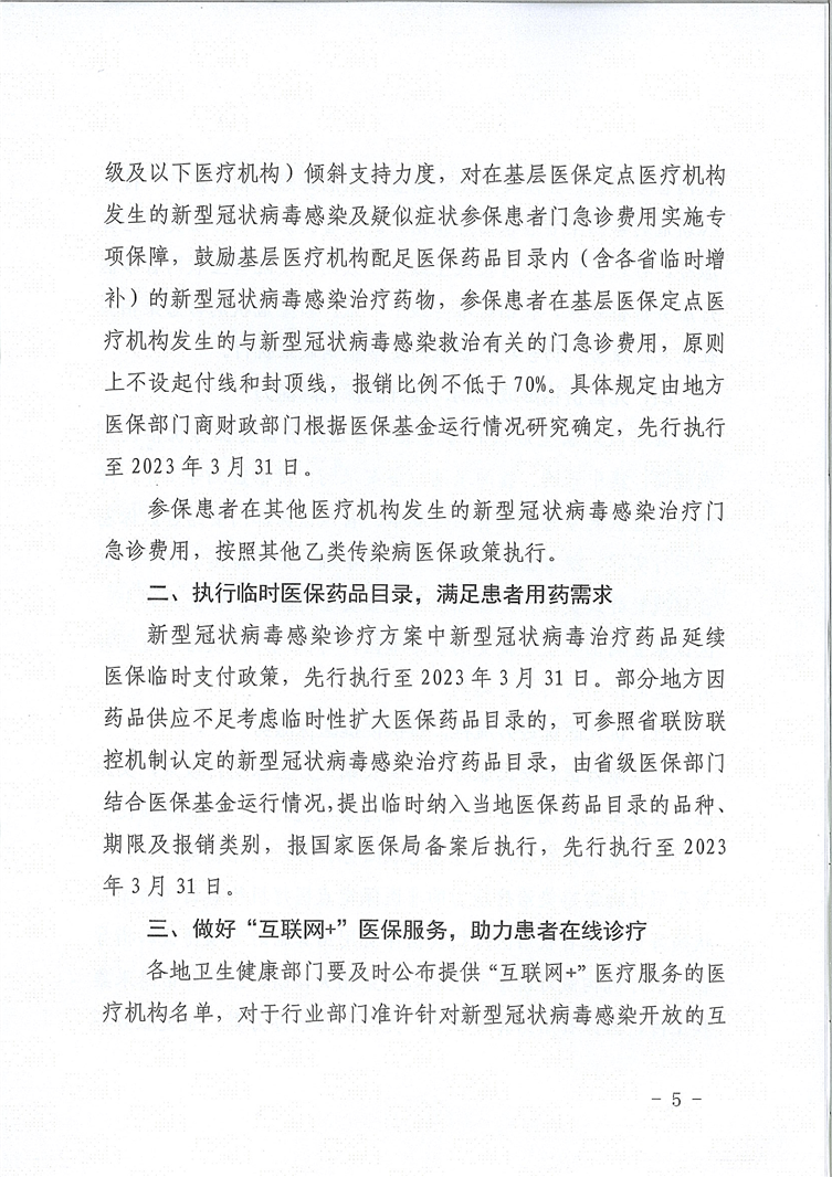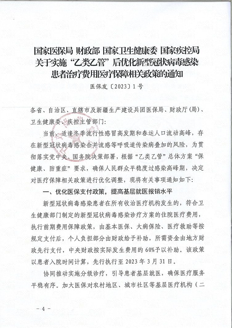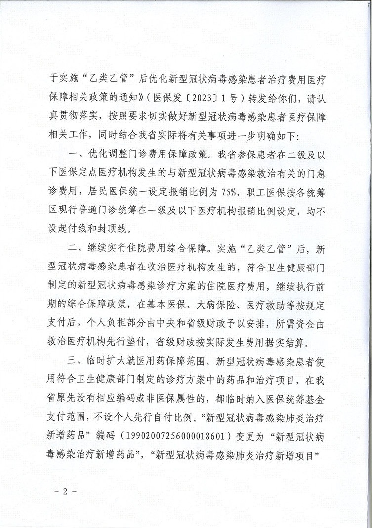 關于實施“乙類乙管”后優(yōu)化新冠病毒感染患者治療費用醫(yī)療保障相關政策的通知