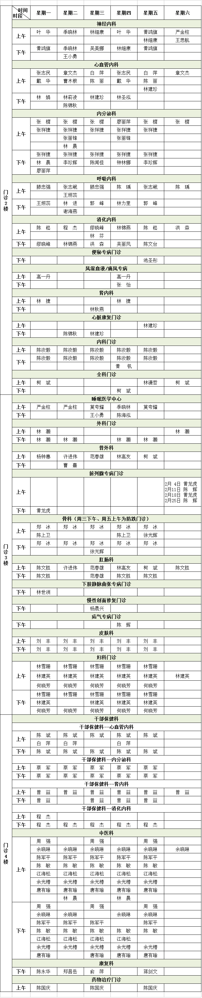 福建省級(jí)機(jī)關(guān)醫(yī)院2023年2月專家門診排班表來(lái)啦!有需要的小伙伴趕緊收藏。
