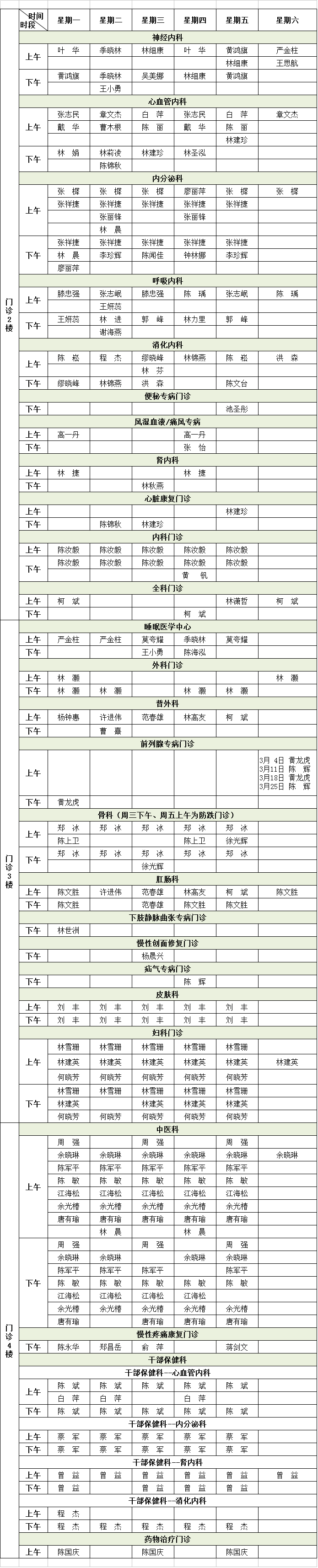 福建省級機(jī)關(guān)醫(yī)院2023年3月專家門診排班表來啦!有需要的小伙伴趕緊收藏。
