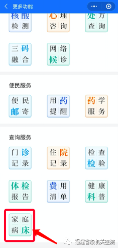 點(diǎn)擊:更多服務(wù)→家庭病床→建床申請(qǐng)